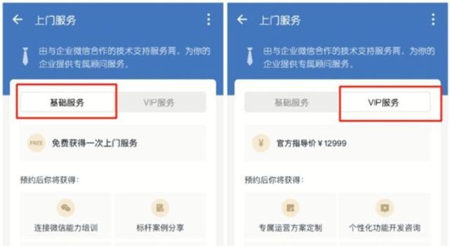 在這里可以明確的告訴大家,上門(mén)服務(wù)是需要收費(fèi)的,當(dāng)然,公司在開(kāi)通企業(yè)微信之后都會(huì)有一次免費(fèi)的基礎(chǔ)上門(mén)服務(wù),如果公司使用了這次服務(wù)之后再想使用上門(mén)服務(wù)的話,就必須要進(jìn)行付費(fèi)了。一般來(lái)說(shuō)VIP上門(mén)服務(wù)的收取費(fèi)用設(shè)置在12999元/次。如果你的企業(yè)想預(yù)約上門(mén)服務(wù),也可以查看官網(wǎng)聯(lián)系我們,我們會(huì)提供一些專業(yè)知識(shí)的解答!