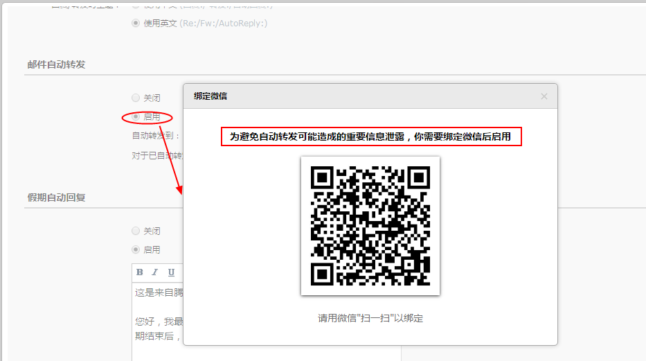 2.已綁定微信的用戶,需要驗證微信后才能啟用自動轉(zhuǎn)發(fā),如下圖: