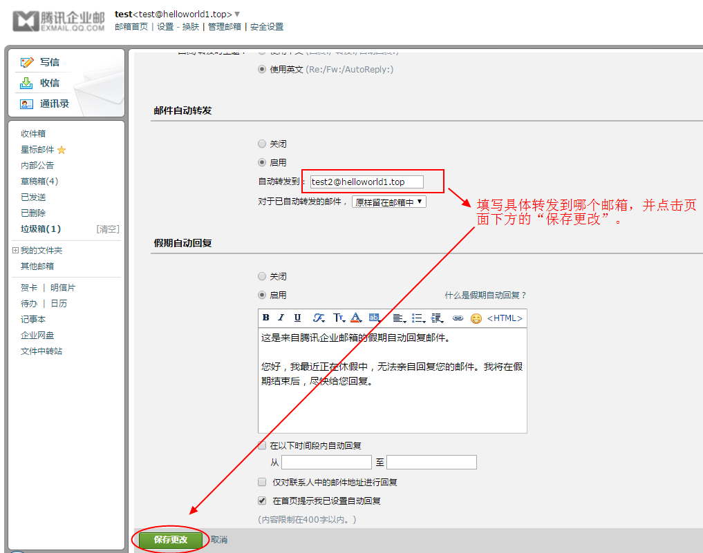 一、在郵箱設(shè)置或創(chuàng)建收信規(guī)則時, 如果啟用“自動轉(zhuǎn)發(fā)”功能,需要進行微信二次驗證。