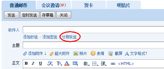 如果您想發(fā)封郵件給多個好友,但又希望對方看到收件人里只有自己的郵件地址,讓每個人都感覺到是您單獨發(fā)送的,那么可以使用“分別發(fā)送”。