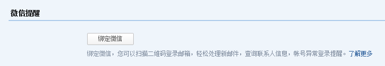 如果您開通了微信,可以點擊“綁定微信”啟用微信提醒服務。您收到郵件后會在微信上對您進行提醒,查詢同事通訊錄,日歷事項提醒等溫馨提示。打開微信“掃一掃”掃描二維碼,并在微信點擊確認綁定。