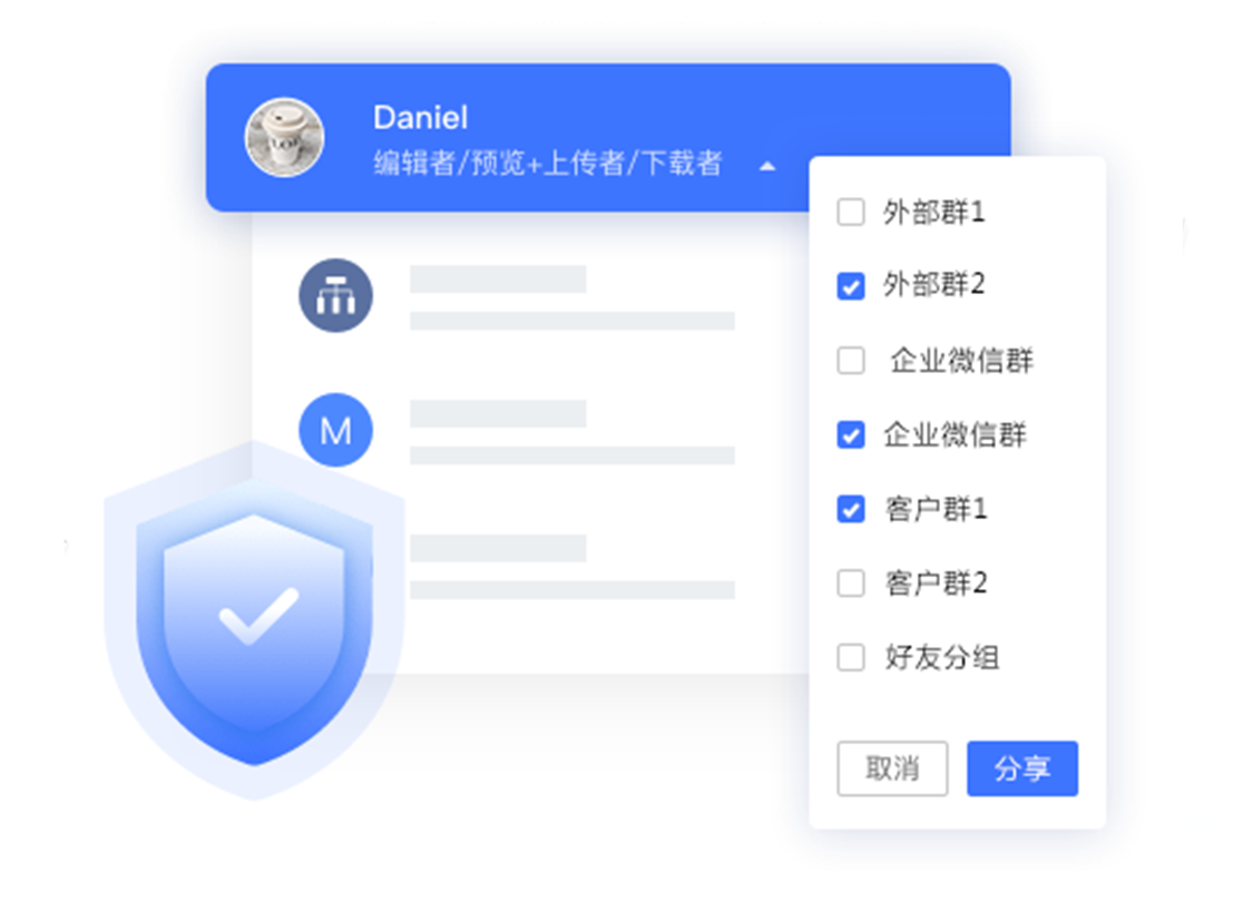 包括兼容內(nèi)部的權(quán)限體系和外發(fā)權(quán)限控制。